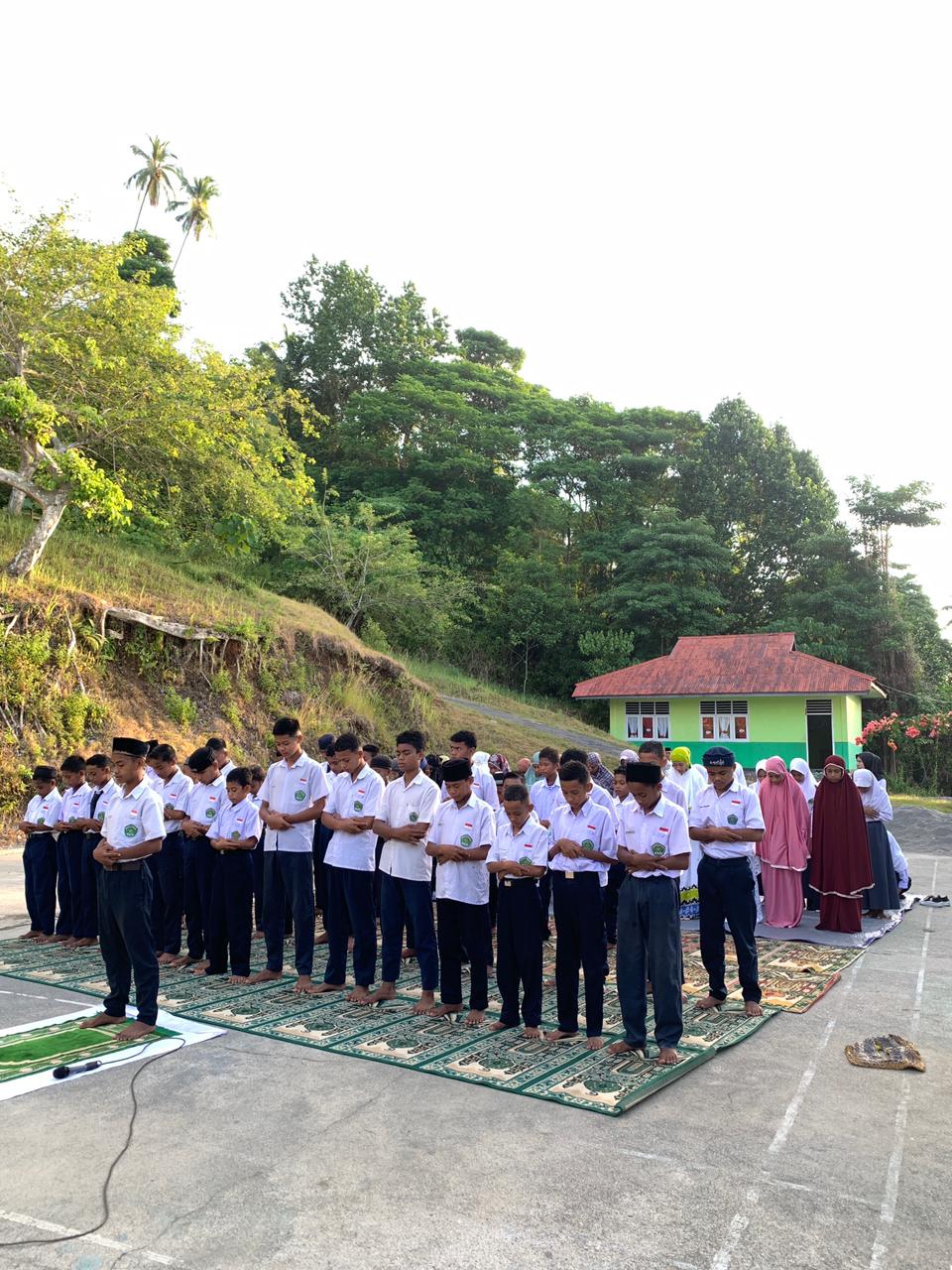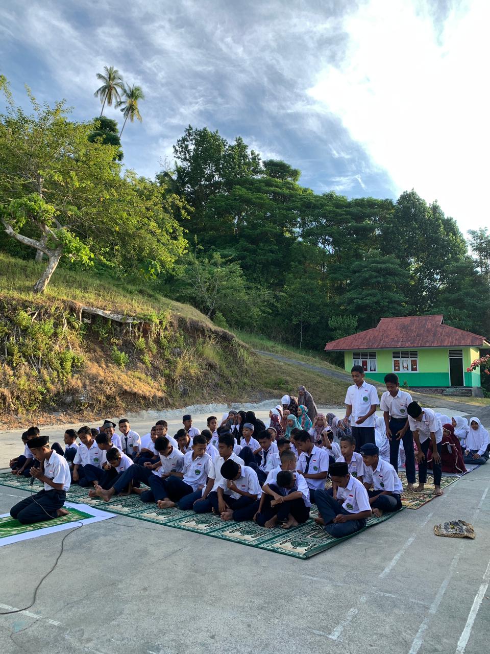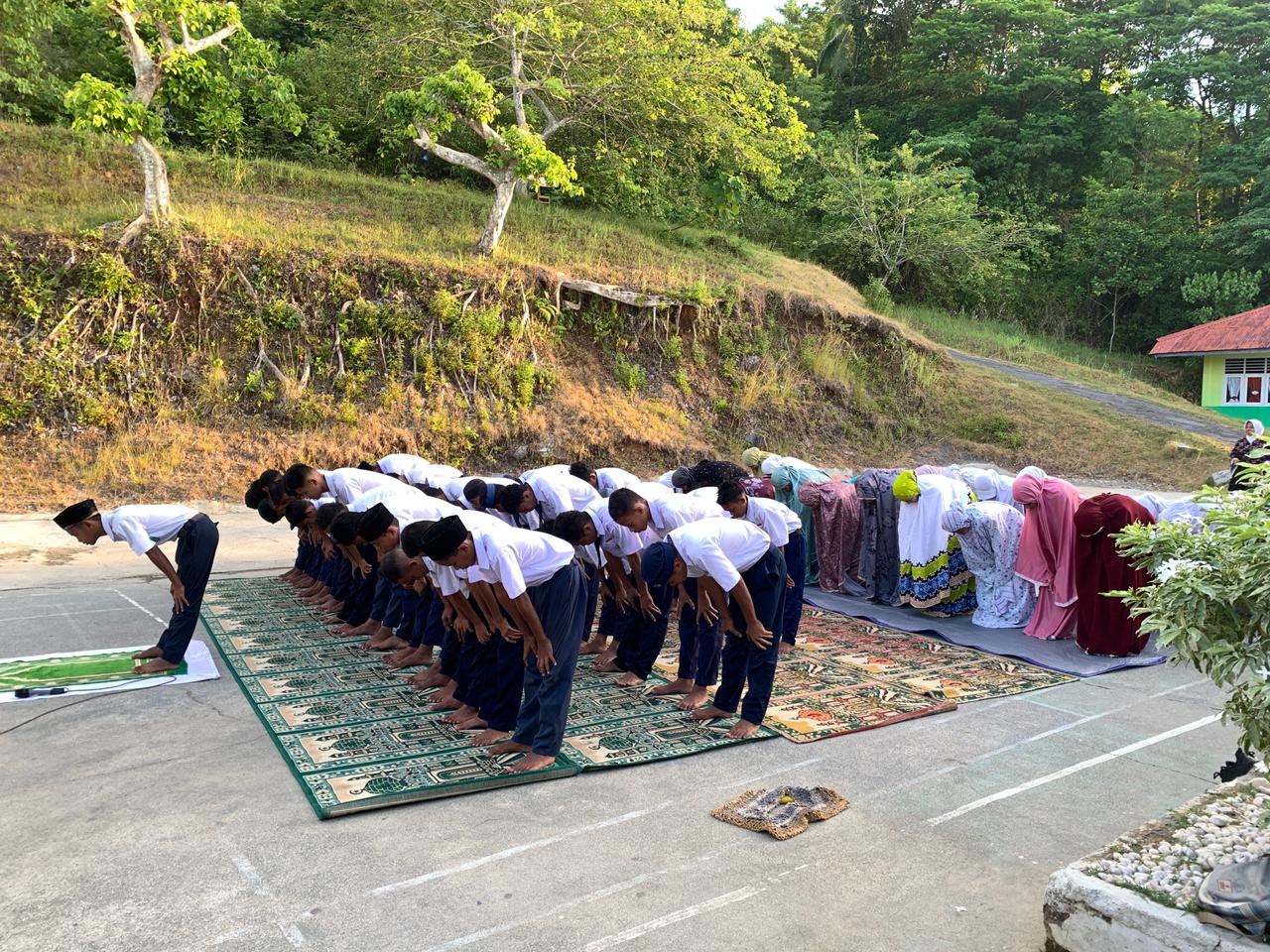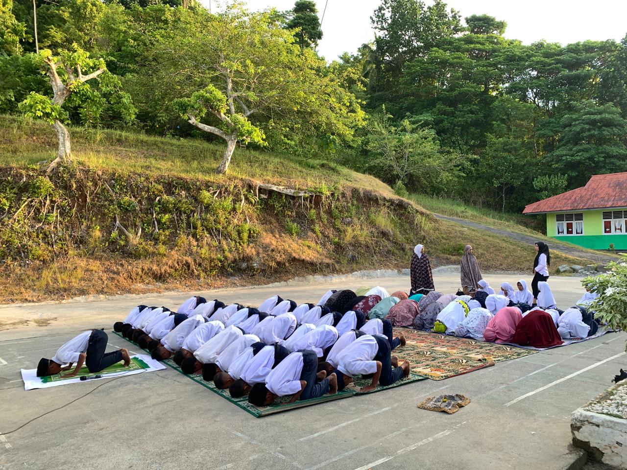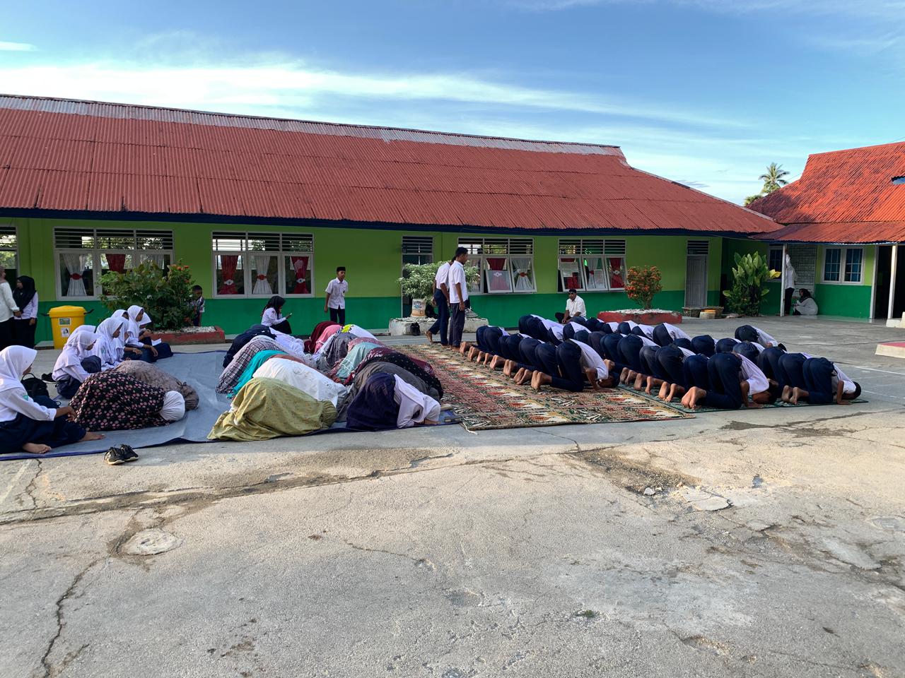 Lapangan Upacara MTsN 7 Maluku Tengah. Kegiatan sholat dhuha dan bimbingan membaca Al-Qur'an oleh guru.