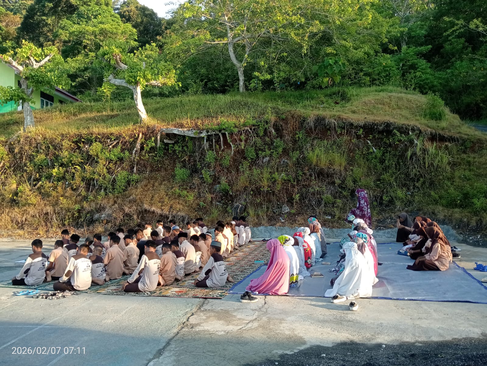 Sabtu. 07/02/2026. lokasi masih tetap lapangan Upacara MTsN 7 Maluku Tengah.....Kombinasi sholat Dhuha dan literasi (seperti membaca Al-Qur'an/buku) di hari Sabtu menjadi program pembiasaan positif untuk menenangkan pikiran, meningkatkan fokus, membuka pintu rezeki, serta membentuk akhlak dan kecerdasan siswa sebelum beraktivitas. Ini menciptakan lingkungan sekolah/pribadi yang harmonis, berkah, dan siap belajar.